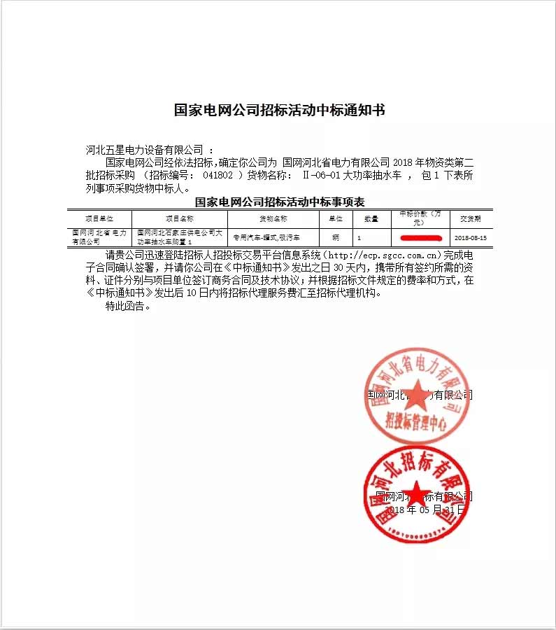 【祝賀五星中標(biāo)!】祝賀河北五星在國家電網(wǎng)公司招標(biāo)活動一舉中標(biāo)!!